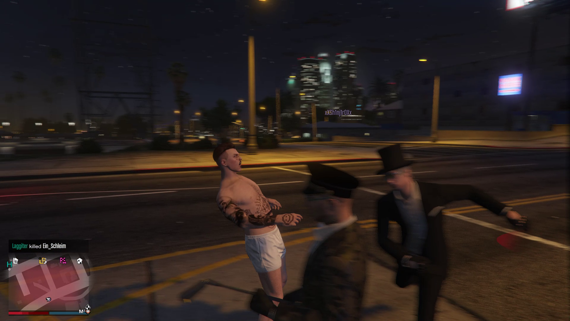 The artist's avatar is seen passively idling around the virtual map of Los Santos and thus subjects himself to the agency of other players. The game world follows its own rules of contact and conduct, which players can choose to either respect or transgress. Yet, for the duration of this performance, the avatar's passivity overwhelmingly renders him a target for unprovoked and uninhibited violence.